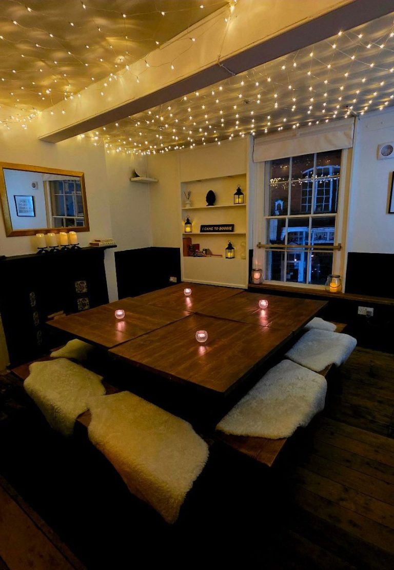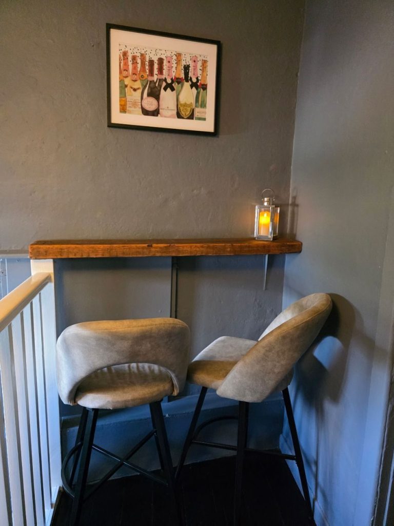 Downstairs we can seat 25 people and upstairs, we have seating for a further 20 people over three separate areas.